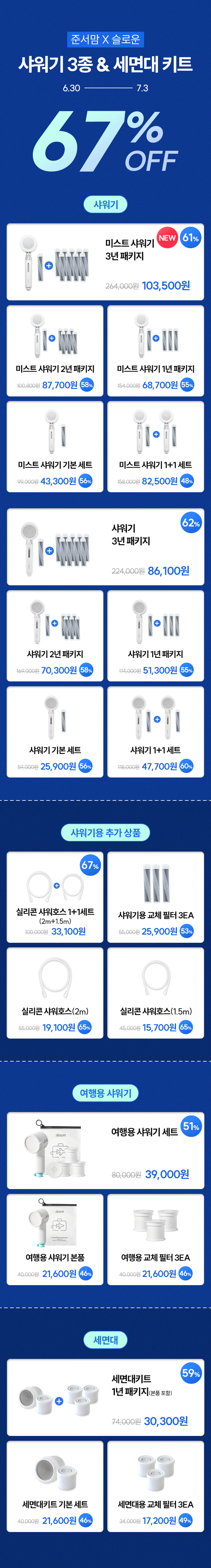 [준서맘X슬로운] 필터샤워기 3종 & 세면대 키트 공구
