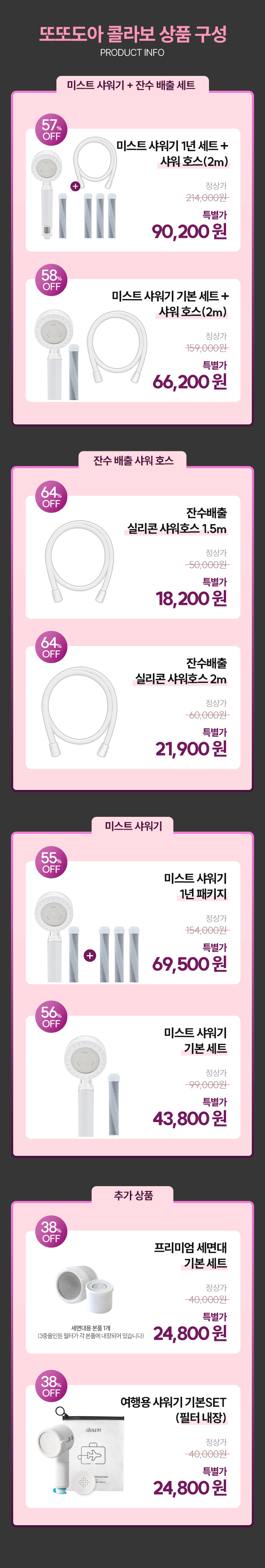 💗또또도아 x 슬로운💗 슬로운 잔수배출 샤워 호스 & 미스트 샤워기