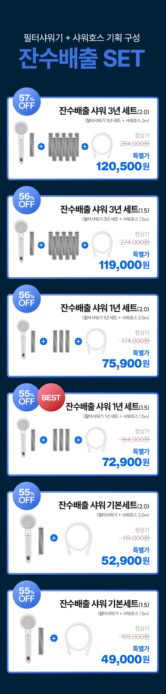 [잔수배출 SET] 슬로운 필터샤워기 + 샤워호스SALEBESTMD오늘출발