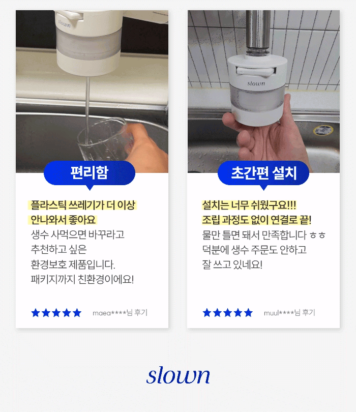 | 둘 | 초고도 4중 압축 필터로 잔류염소 100% 제거 + 분당 2L 강력 정수 |
